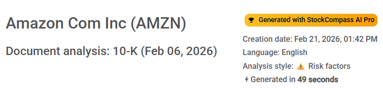 Analysis style: Risk factors. Generated with StockCompass AI Pro in 49 seconds (creation date: Feb 21, 2026).