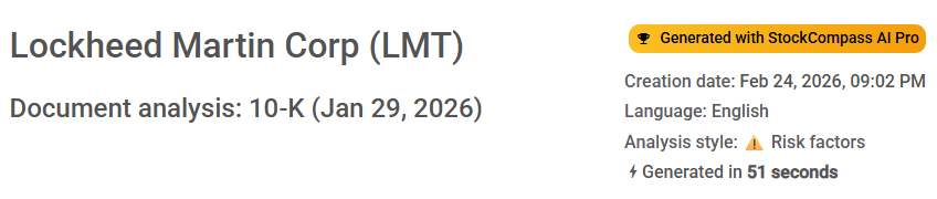 Analysis style: Risk factors. Generated with StockCompass AI Pro in 51 seconds (creation date: Feb 24, 2026).