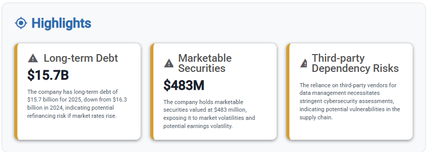 - $15.7B in long-term debt → refinancing risk if rates rise
