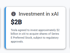 The 10-Q discloses a $2B investment in xAI preferred shares.