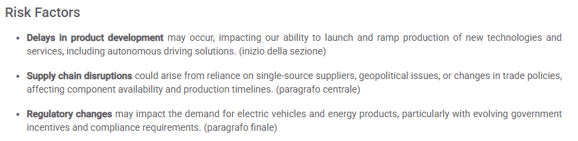 Screenshot: Risk Factors – Delays in product development and ramp production language.